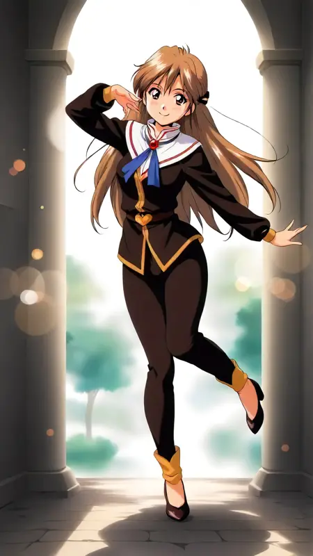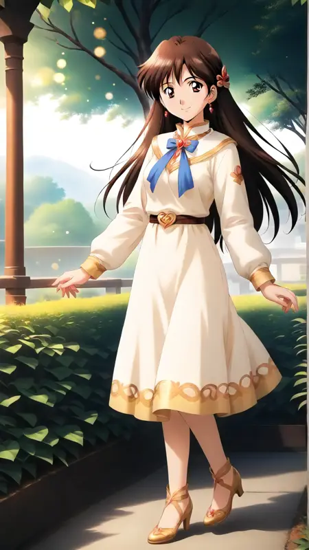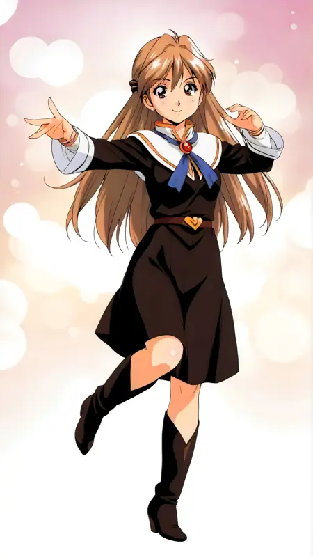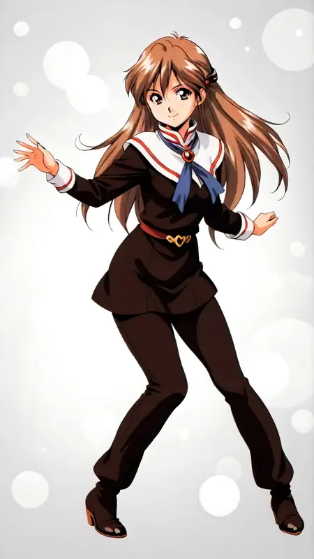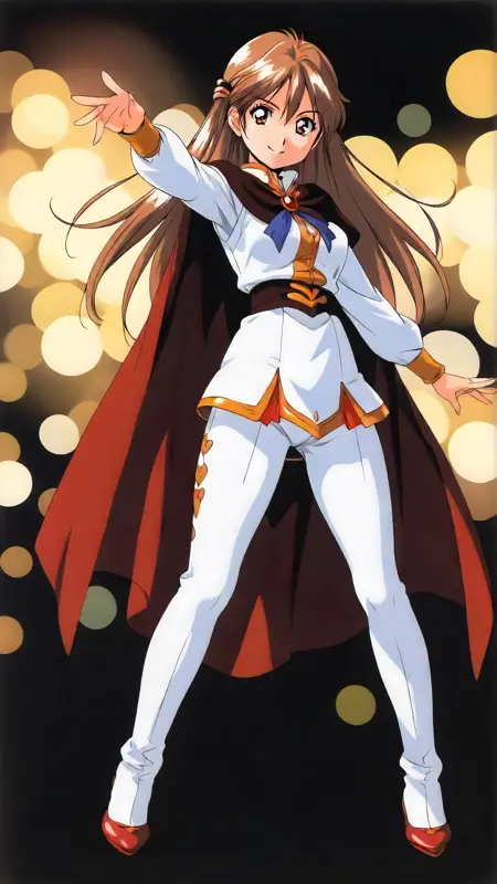 Example prompt : "yui_uzuki, an anime girl, 1girl, solo, long hair, looking at viewer, smile, simple background, brown hair, white background, brown eyes, full body , brooch, retro artstyle, standing, dynamic pose, "