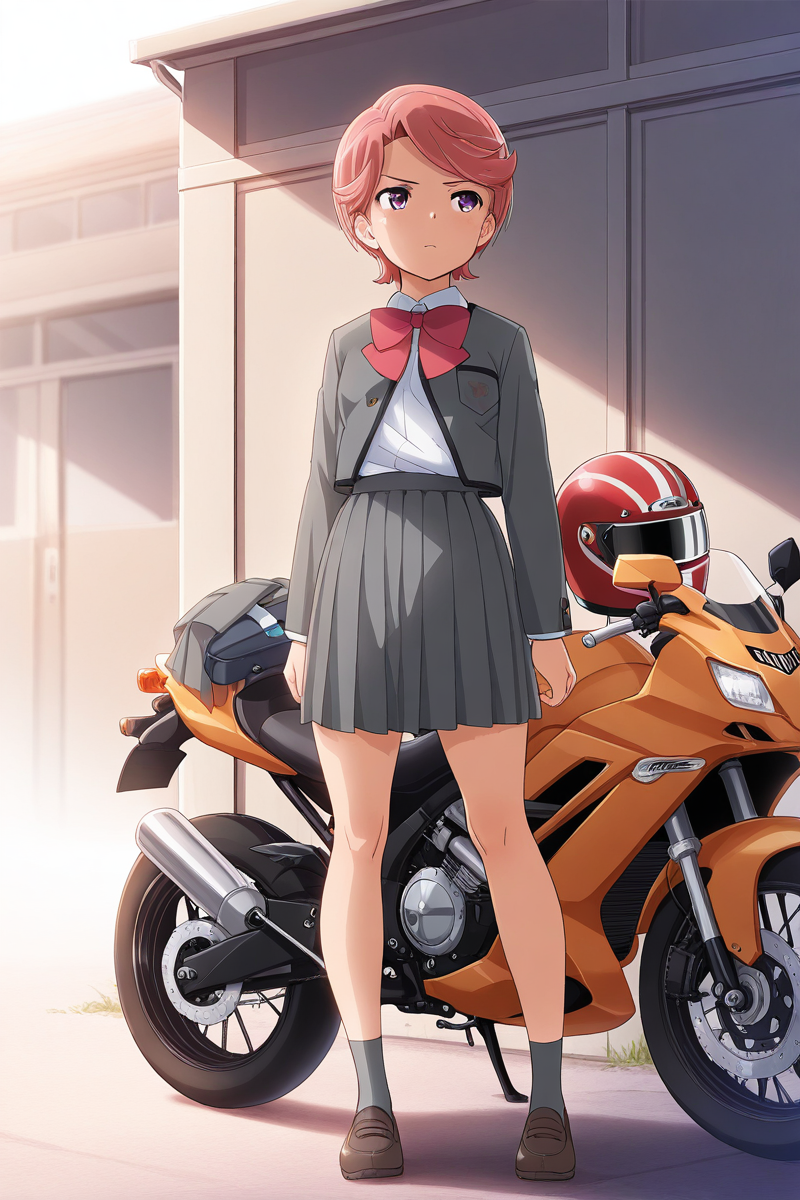 futaba, 1girl, solo, jacket, skirt, short hair, pink hair, buttons, epaulettes, stage outfit