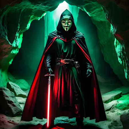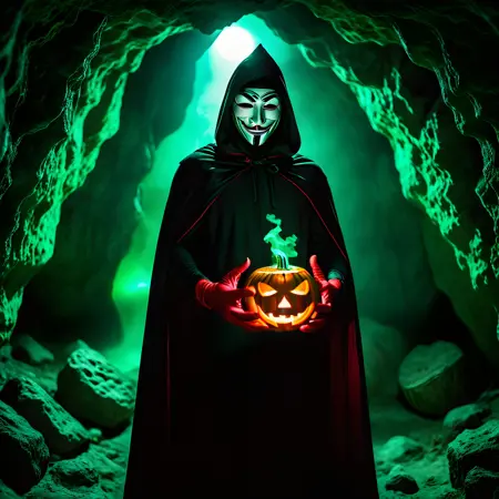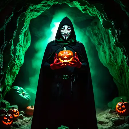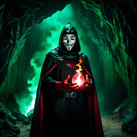 洞窟内で青い火の球を手に持つダークロードを生成します。
