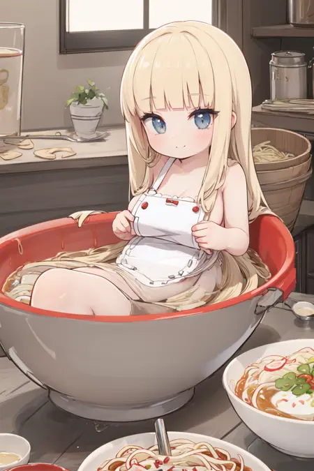 After realizing that most naked apron on this site only work with realism I just made one of my own. Tends to work best at 0.6 this model was trained on NAI anime-full-pruned and generated in CuteYuki 2. Primarily trained on plain white apron, some minor variations of pink colors or slight frills included, but primarily trained on traditional apron.