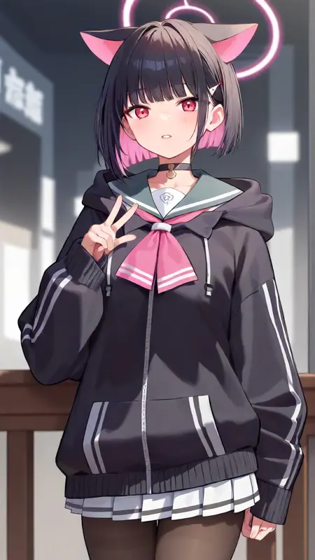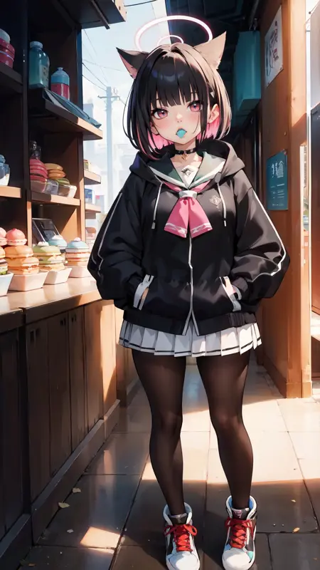 | Trained Words | kazusa_blue_archiveCopied! kazusa_blue_archive, an anime girl, 1girl, solo, looking at viewer, short hair, bangs, skirt, simple background, black hair, hair ornament, red eyes, long sleeves, animal ears, jacket, pink hair, pantyhose, multicolored hair, pleated skirt, parted lips, choker, hairclip, hand up, hood, miniskirt, sailor collar, grey background, two-tone hair, black jacket, neckerchief, sleeves past wrists, v, black choker, halo, white skirt, hooded jacket, brown pantyhose, colored inner hair, pink neckerchiefCopied! kazusa_blue_archive, an anime girl, 1girl, solo, looking at viewer, blush, short hair, bangs, skirt, simple background, black hair, red eyes, long sleeves, white background, holding, animal ears, standing, jacket, full body, pink hair, pantyhose, multicolored hair, pleated skirt, food, shoes, choker, hood, miniskirt, sailor collar, two-tone hair, black jacket, neckerchief, black pantyhose, black choker, halo, white skirt, sneakers, hooded jacket, hood up, hand in pocket, brown pantyhose, colored inner hair, macaron, pink neckerchiefCopied! kazusa_blue_archive, an anime girl, 1girl, solo, breasts, looking at viewer, blush, short hair, bangs, simple background, black hair, hair ornament, red eyes, long sleeves, white background, animal ears, medium breasts, jacket, pink hair, pantyhose, multicolored hair, open clothes, choker, hairclip, hood, two-tone hair, open jacket, black jacket, gun, black choker, halo, hooded jacket, areola slip, colored inner hair, hands in pocketsCopied! |