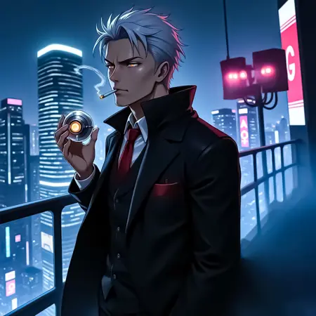 In a world smothered by rain and neon rot, Avarice bleeds style and wrath in equal measure. The realm is one of iron and ember, where arcane circuitry coils beneath obsidian leathers and each step is etched in radiant crimson.