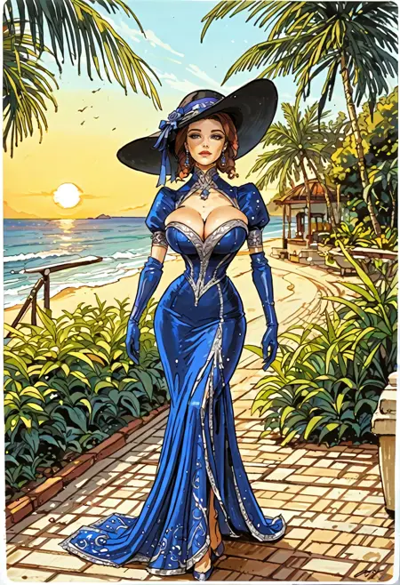 For having a tropical resort bungalow in background. Should do both interiors and exteriors, though it prefers interiors.