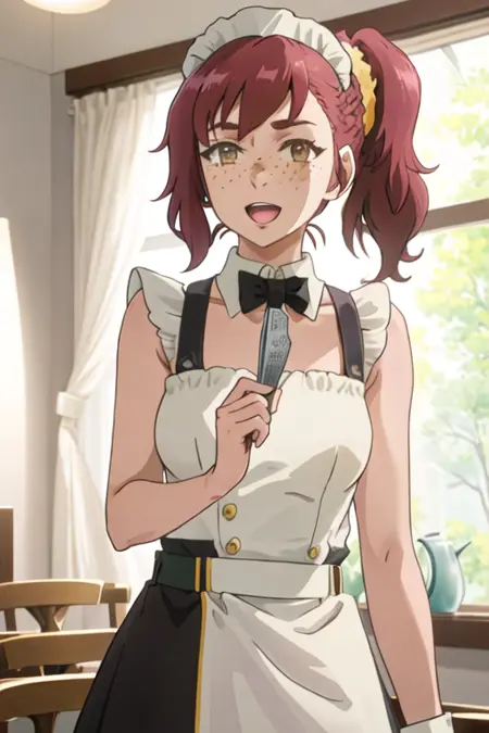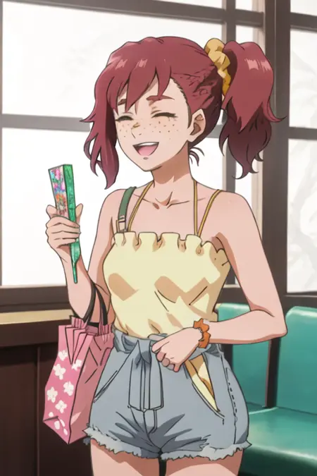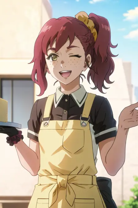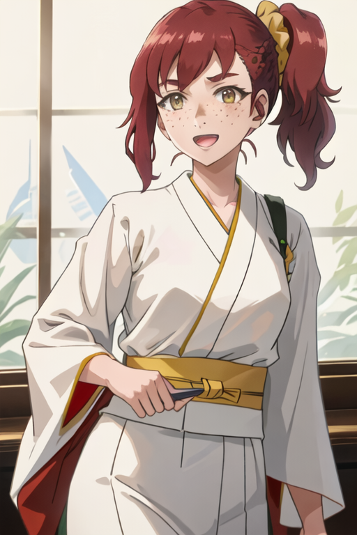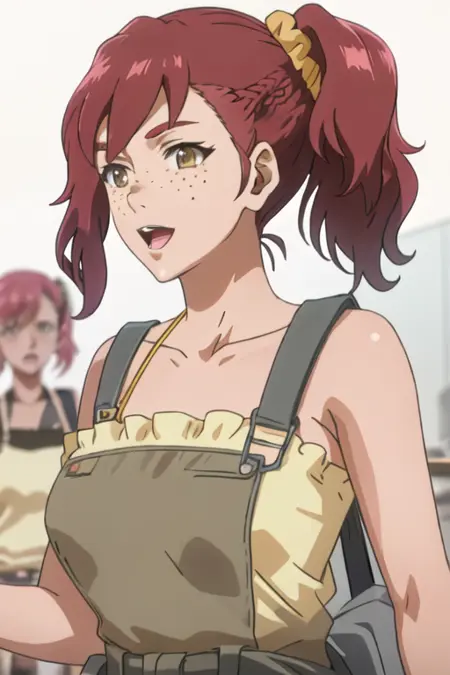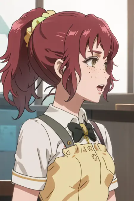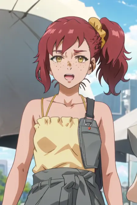 トリガー語はlily_lipman_birdiewinggolfgirlsstoryであり、推奨タグはbest quality, masterpiece, highres, solo, {lily_lipman_birdiewinggolfgirlsstory:1.15}, red_hair, scrunchie, freckles, side_ponytail, brown_eyes, open_mouth, hair_ornamentです。