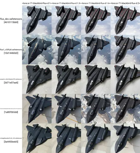 此LoRA可生成超音速侦察机洛克希德SR-71“黑鸟”的图像。