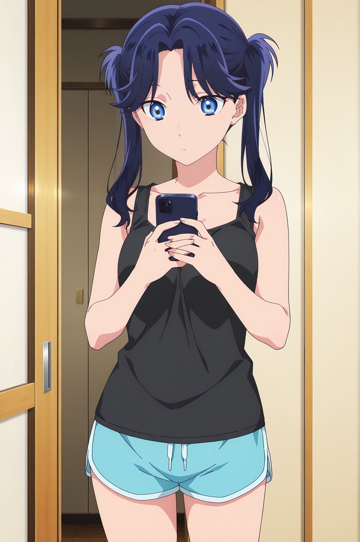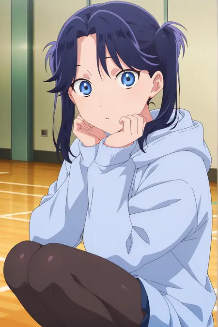 Ayame, blue eyes, twintails, blue hair, bangs, long hair