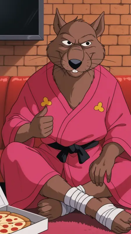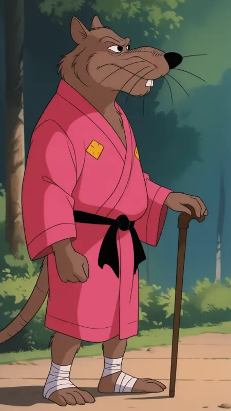 스타일 태그: 1980s_(style), retro artstyle, toon_(style), parody, Master Splinter \(teenage_mutant_ninja_turtles_(1987)\,