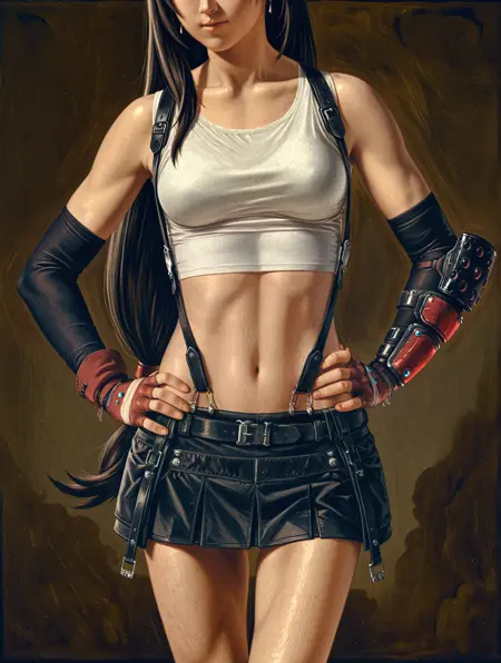 バージョン1:(非公開)50枚の画像に「Oil Painting, Realistic」のタグセットだけで学習しました。その結果、キャラクターが正しく生成されず、年齢が過剰に老けていたり若すぎたりする問題が発生しました。LoRAは過剰に強すぎ、手が変形し、すべてがフレームに囲まれるようになってしまいました。