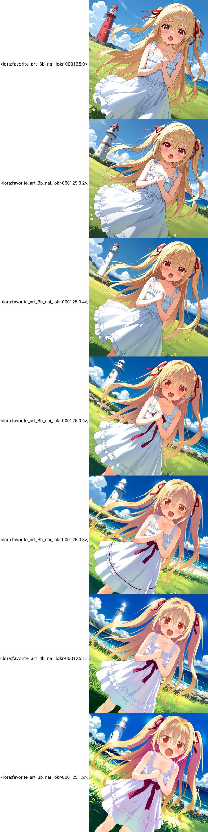 私のLoRAを使用する際は、いかなる肯定的な品質タグも使用しないでください。品質タグの本質はアートスタイルであり、これがなぜあなたの結果が私のと大きく異なるのか、特に輝きシリーズのベースモデルで顕著です!
