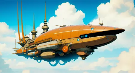 This generative image model demonstrates specialized capabilities for creating diverse airship/spacecraft designs in an anime-inspired style. The use of specific trigger codes (xjx, fkf, etc.) appears to control major visual characteristics including vessel type, color scheme, and general aesthetic. The model shows particular strength in creating detailed mechanical components and varied atmospheric conditions.