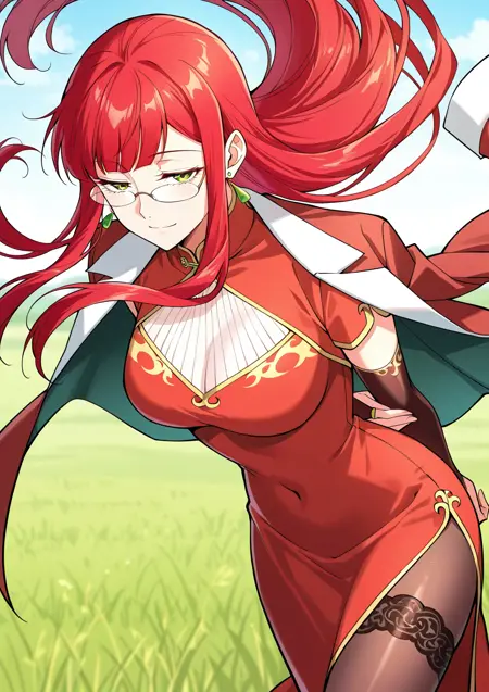 1 girl, solo, green eyes, red hair, long hair, bangs, sidelocks