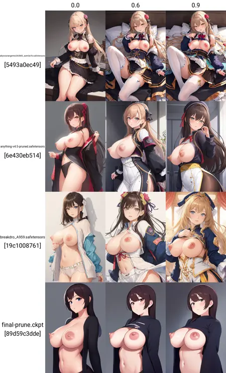 · OD表示使用SuperMerger截取了OUTD部分,以减少LoRa对姿势和画风的干扰。