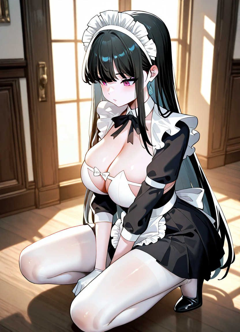 白丝女仆服已补,眼睛部分还是让ADetailer来处理吧,我摆了