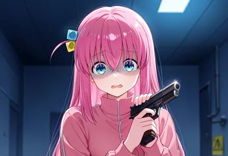 Trigger word: handgun, holding weapon, holding gun, hands up,