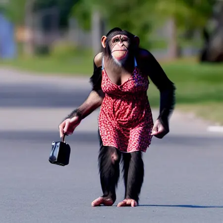 务必始终在提示词中包含“chimp”一词。对于人物,应始终以“chimp”作为开头,例如:“chimp man walking”(黑猩猩人行走)、“chimp girl playing in the backyard”(黑猩猩女孩在后院玩耍)等。