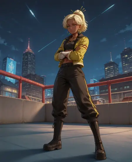 外观: Arsl4n,1名女性,深色皮肤,短发,金发,绿眼