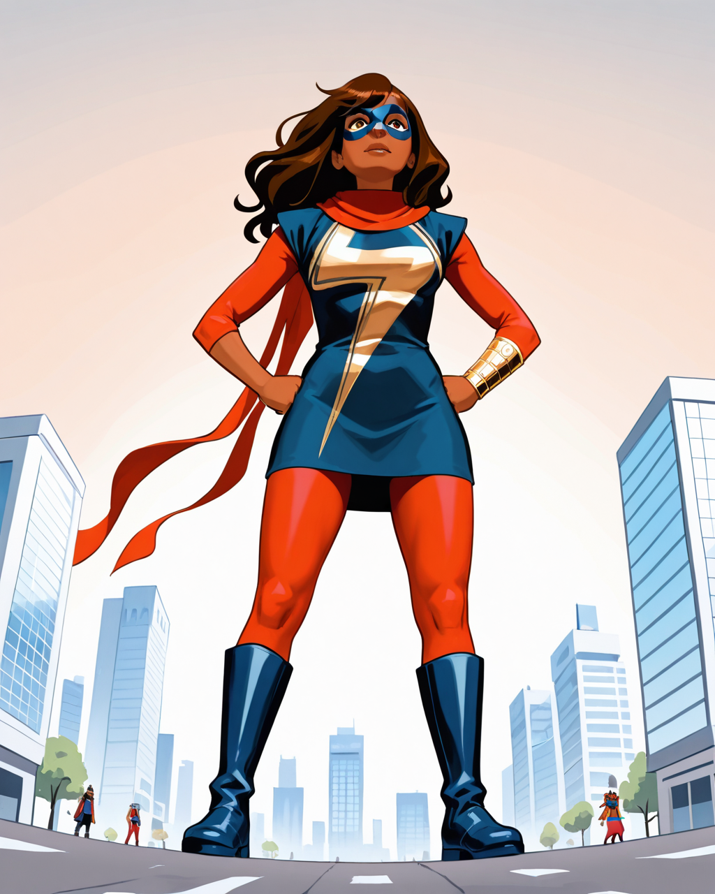 マーベル・コミックスのカマラ・カーン、通称ミス・マーベル。このキャラクターに適したIllustrious LoRAが存在しなかったため、それを補う必要があると感じました。