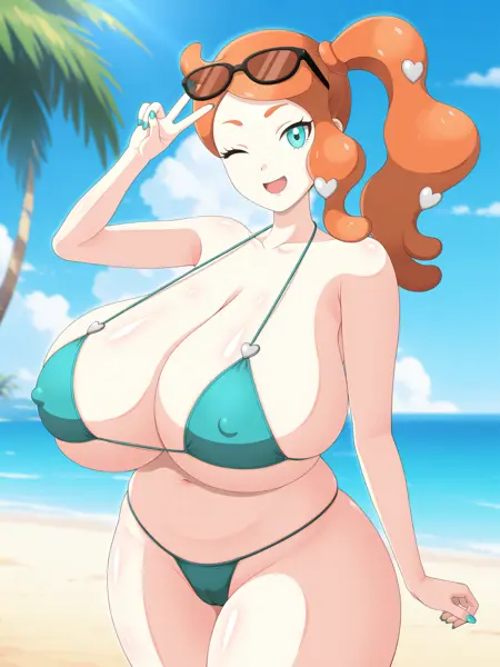 Support prompts: thick thighs, wide hips, large breasts, bikini beach