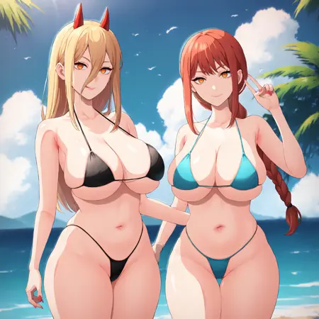 보조 프롬프트: 두꺼운 허벅지, 넓은 골반, 큰 가슴, 비키니 해변