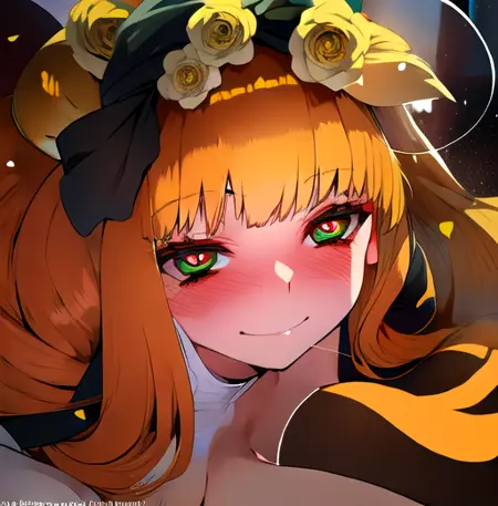 主要プロンプト: 1girl,solo,(orange hair:1),(brown hair:1.2),green eyes,(drill hair:0.7), blush, large breast, bangs