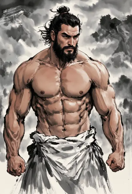 Trained with images generated from Doubao AI, as I'm trying to mimic its ink wash paint style when generating robust warrior figure.