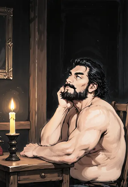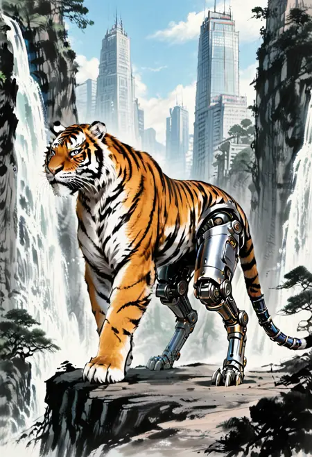 Trained on legacy Doubao AI images primarily featuring mature males, landscapes and animals. While prompted by "ink wash style" in Doubao AI, this is more accurately a blend of ink wash, watercolor and multiple styles.