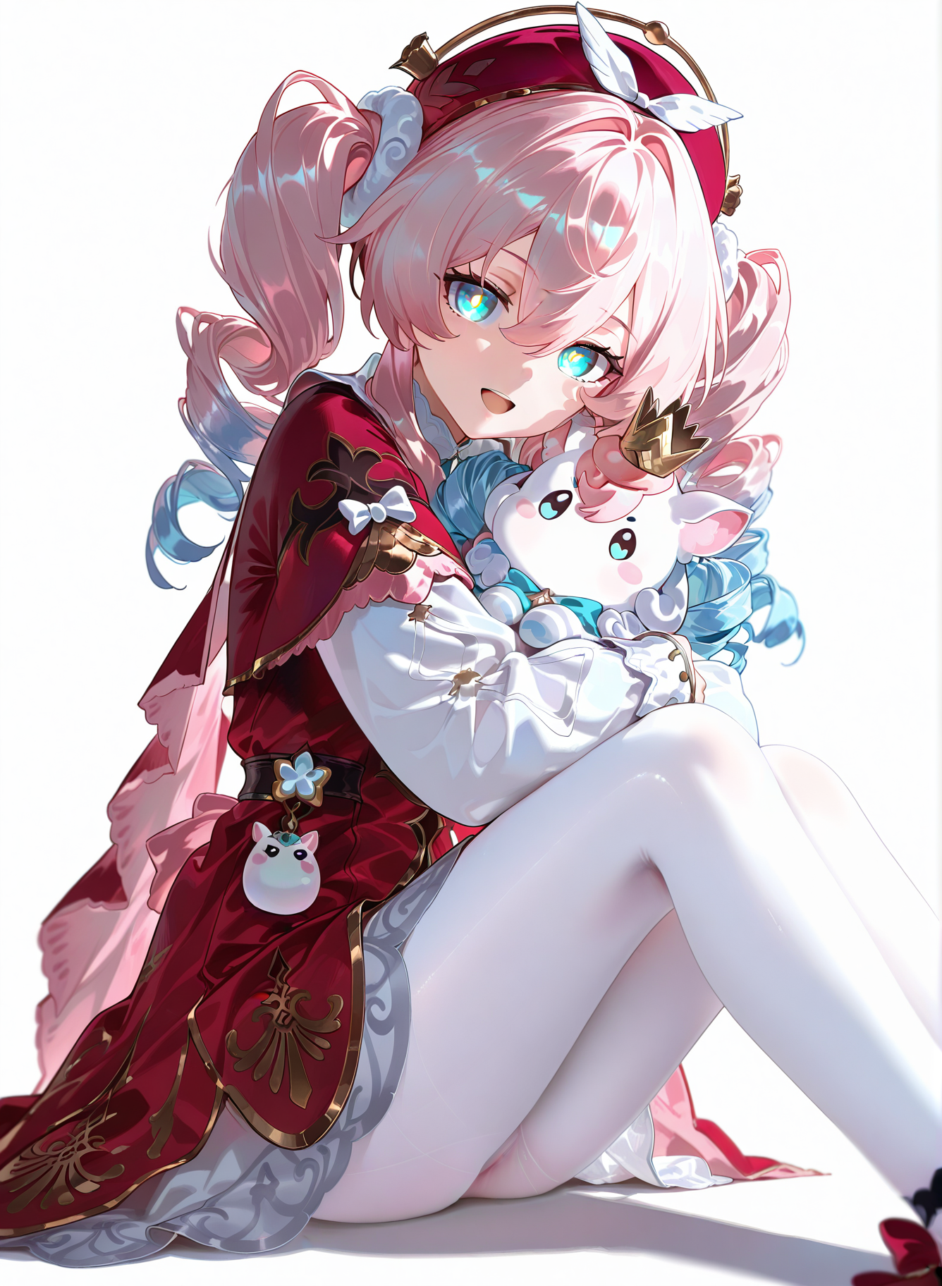 hyacine \(崩坏:星穹铁道\), 1girl, 单人, 粉色头发, 水蓝色眼睛, 红色头饰, 长袖, 帽子, 连衣裙, 双马尾, 红色裙子, 长发, 蓬松长袖, 钻石发饰, 蝴蝶结, 帽子,