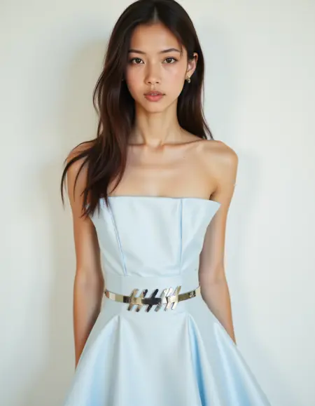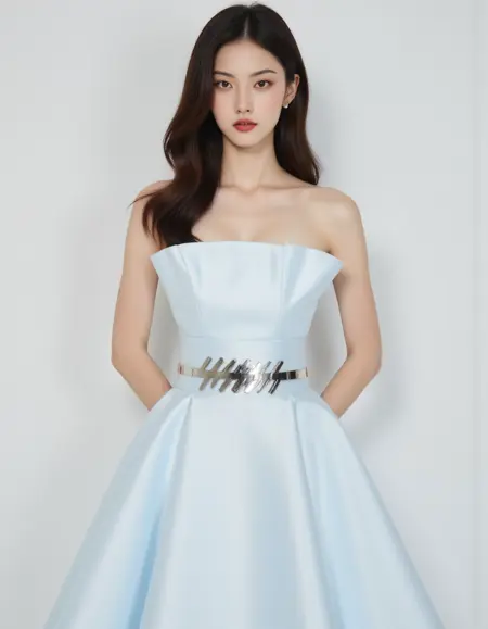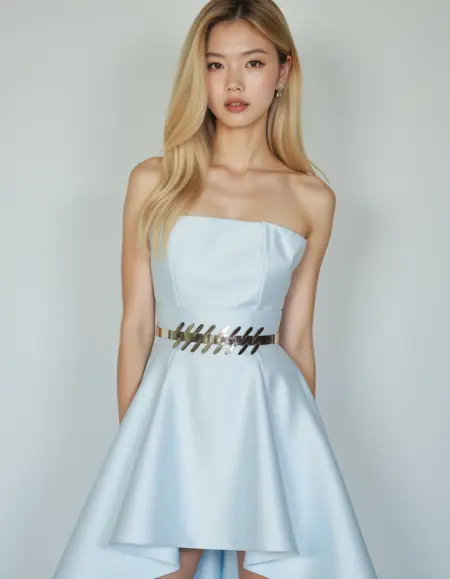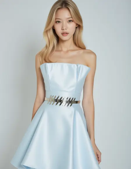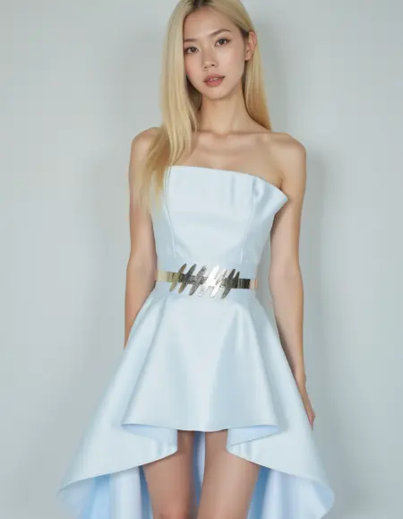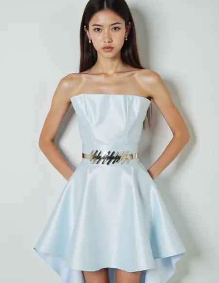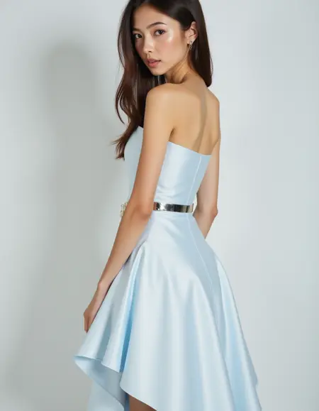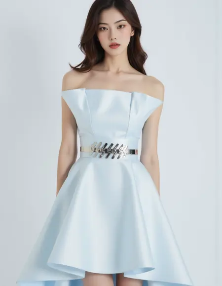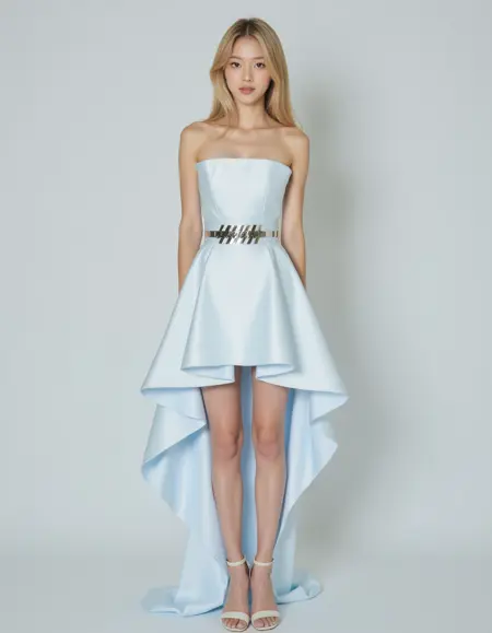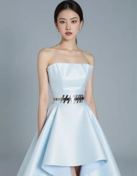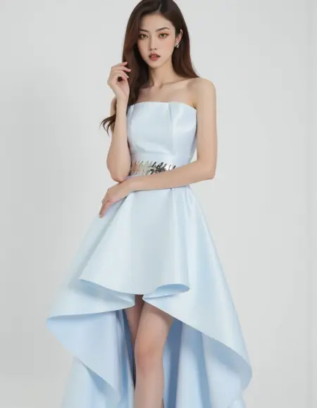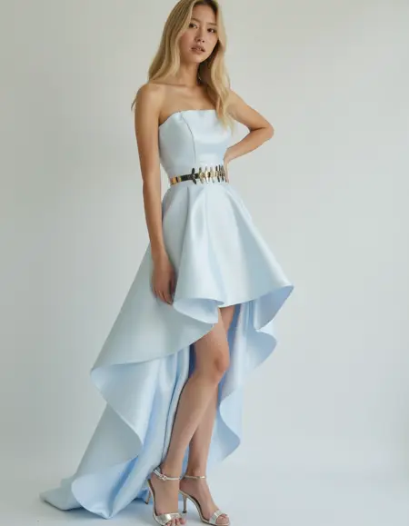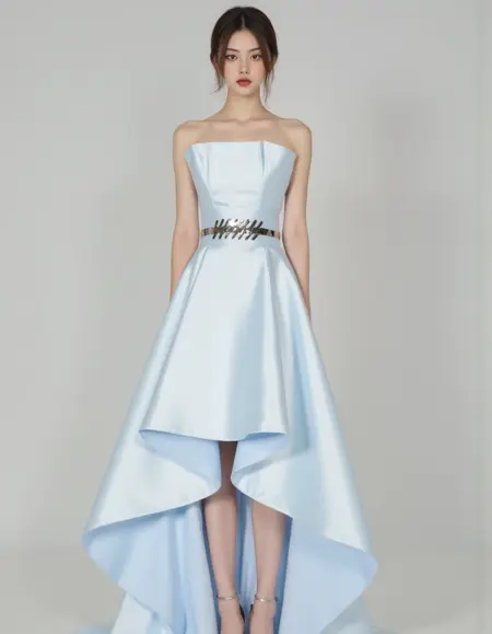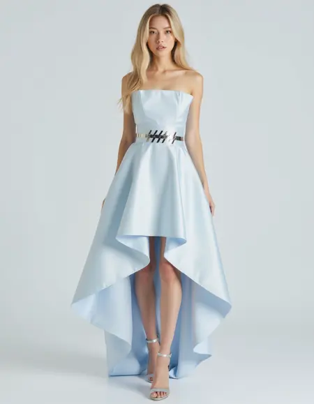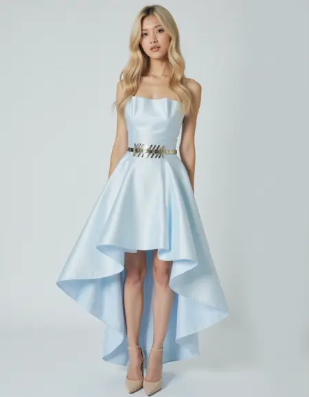 アイロンのサッシュが付いたサテン製ハイロープロムドレス