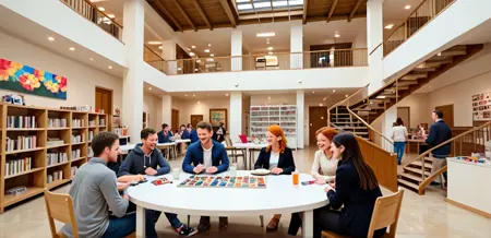 건축적 세부 사항: 모델은 SLB 포츠담을 정의하는 고유한 건축적 특징을 포함한 도서관 및 내부의 이미지를 기반으로 학습되었습니다. 여기에는 현대적인 도서관 공간, 큰 서가, 긴 복도, 자연광이 가득한 독서 공간이 포함됩니다.