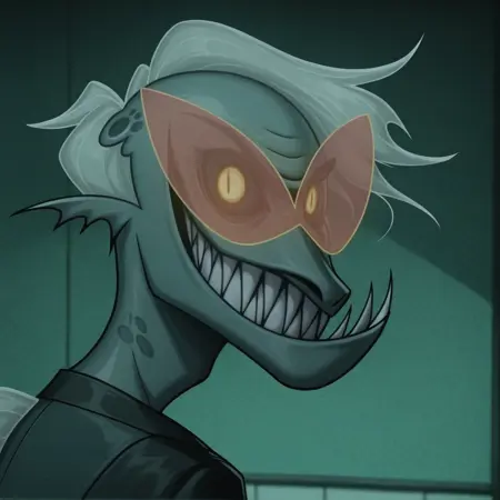 solo, 1boy, sunglasses, no humans, head fins, yellow eyes, no pupils