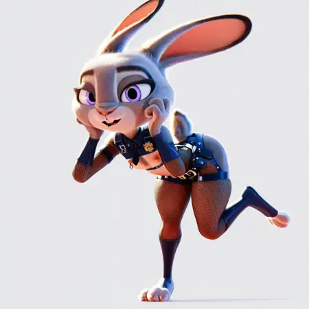 全身,兔尾,警察,门牙,穿孔,举手,乳头,朱迪·霍普斯,尾巴,简单背景,渔网袜,裸体