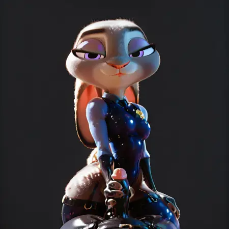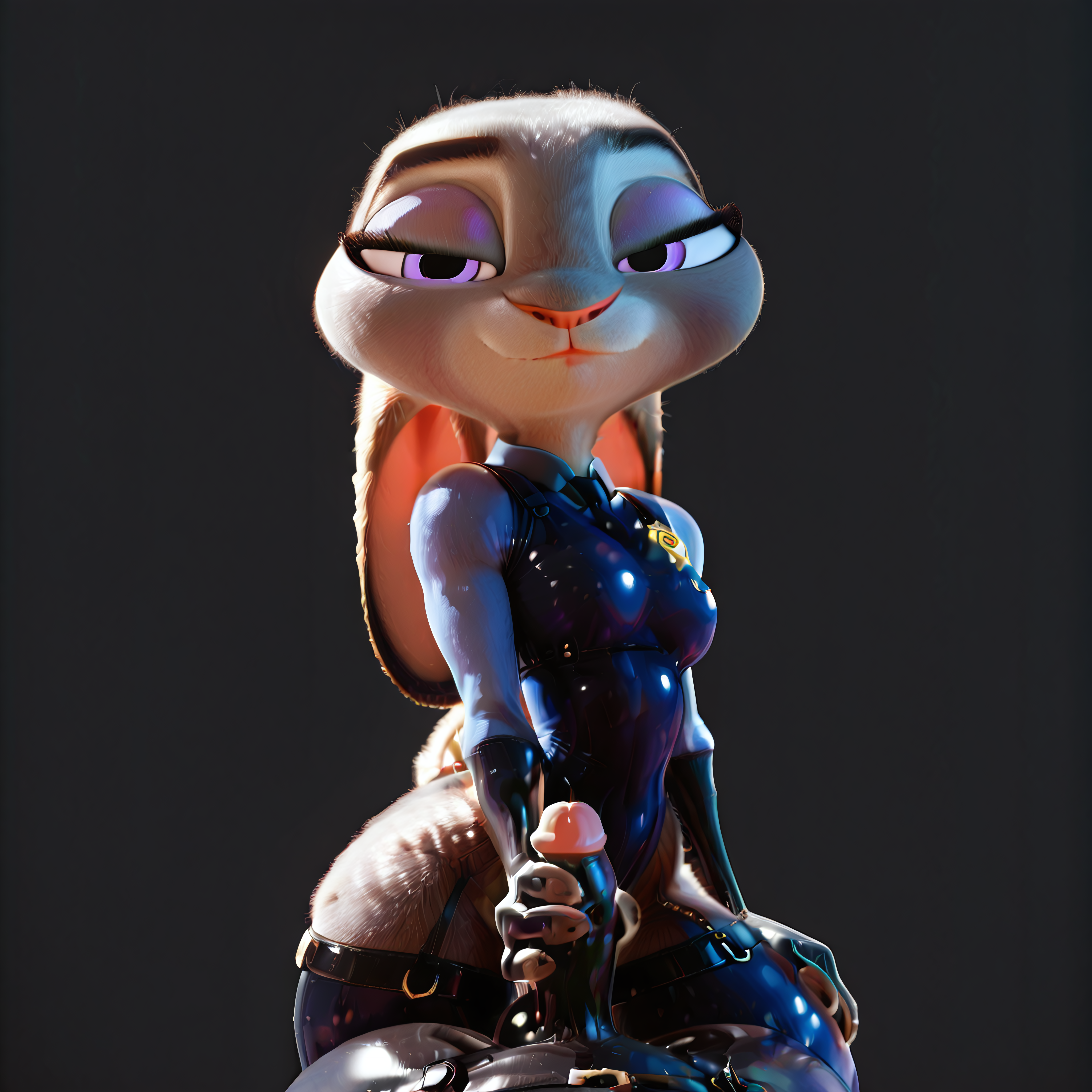 전신, 토끼 꼬리, 경찰, 돌출된 이빨, 피어싱, 손을 들고, 젖꼭지, 저디 호프스, 꼬리, 단순한 배경, 물고기 네트, 벌거벗은