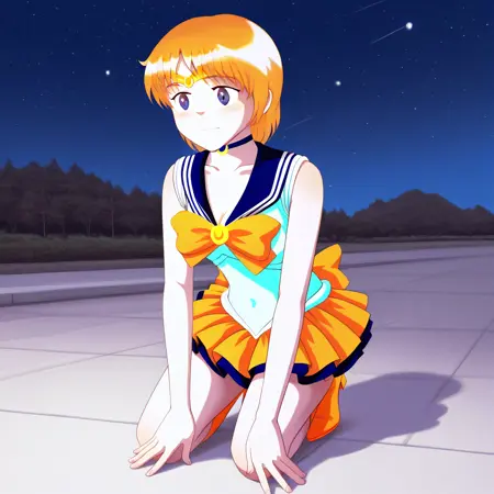 ninelakimova, 1girl, solo, ginger hair, collarbone, sailor moon women's cosplay costume,