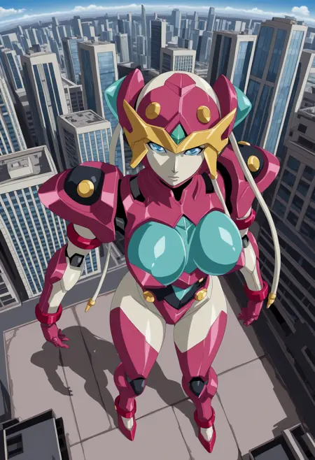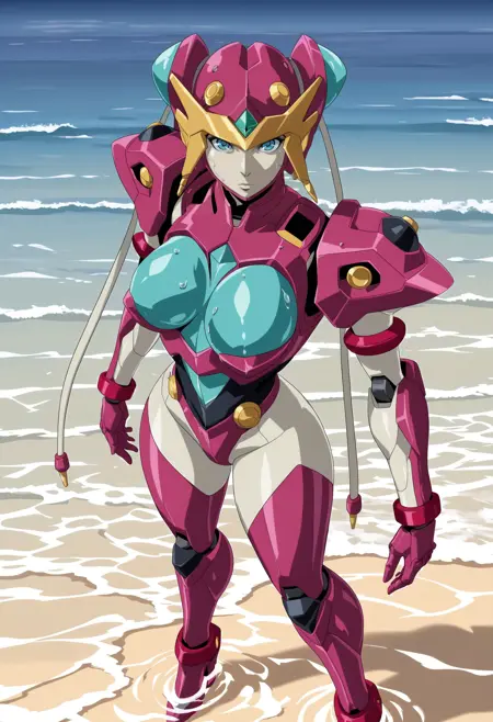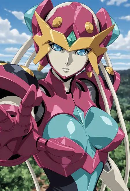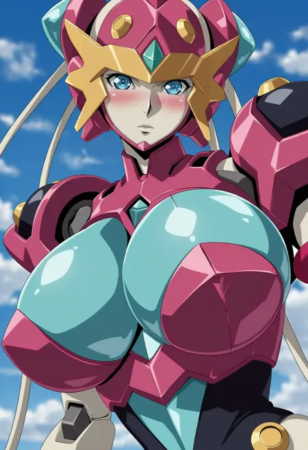 g0ilf, robot, mecha, 1girl, blue eyes, breasts, no humans