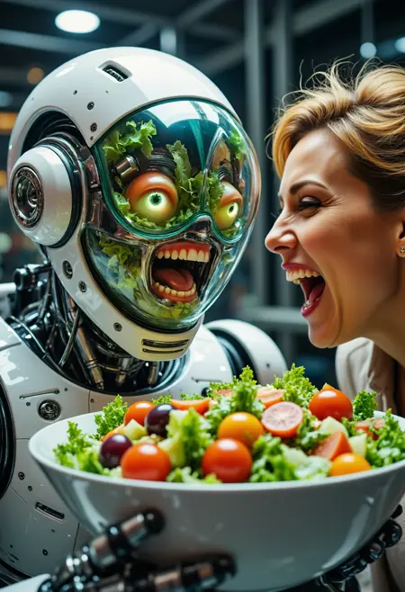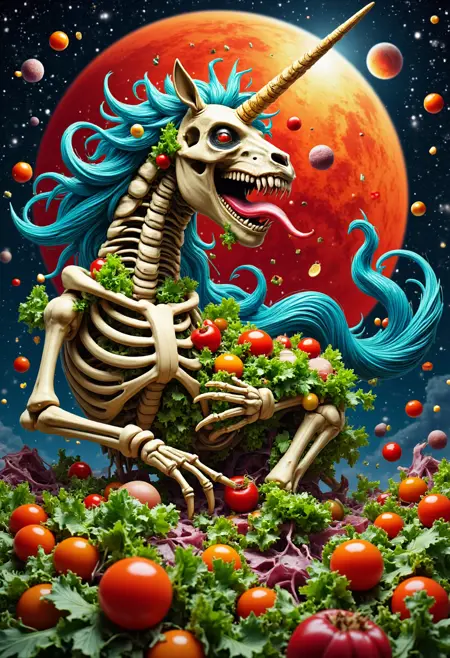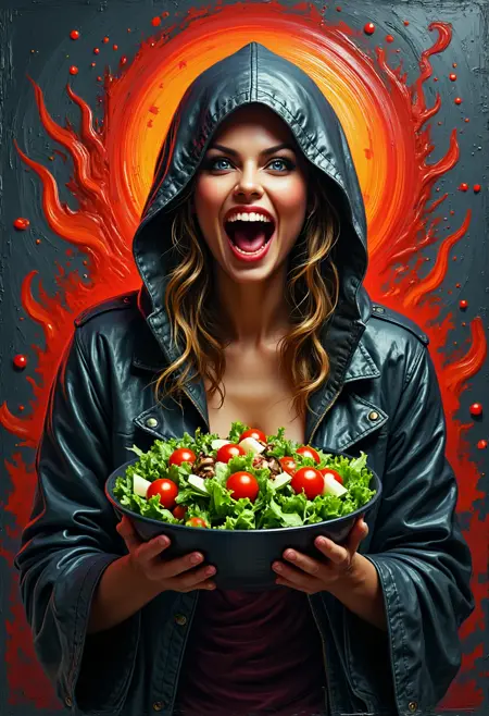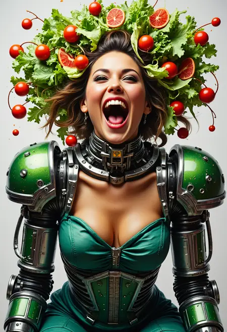YFG Laughing Salad is a whimsical LoRA that interjects laughter, jovial expressions, and an abundance of fresh salads (and greens!) into your images. From comedic culinary scenes to animated characters bursting with mirth, this model brightens any composition with a humorous and healthy twist.