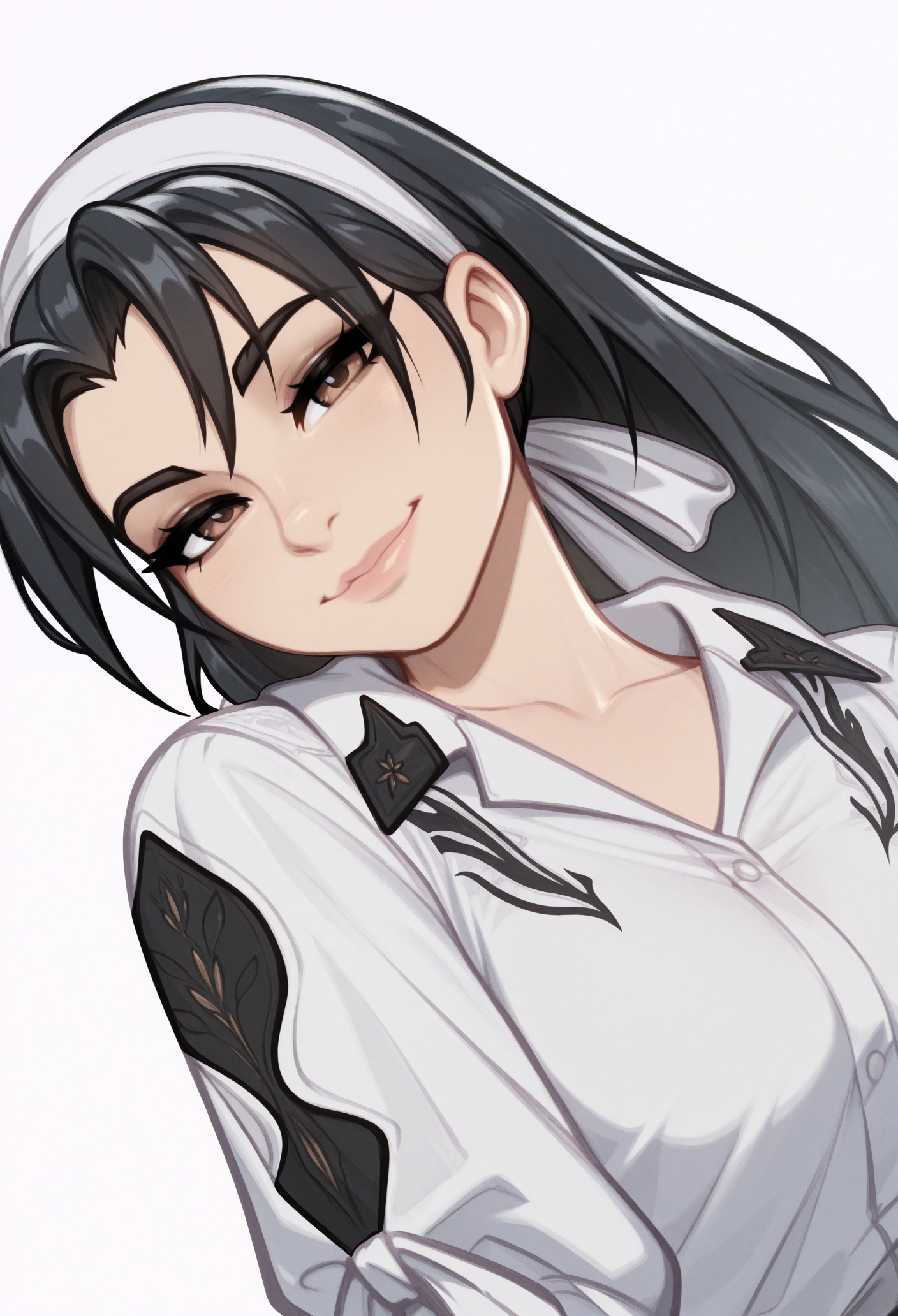 角色标签:棕色眼睛,黑发,长发,白色发带,发饰
