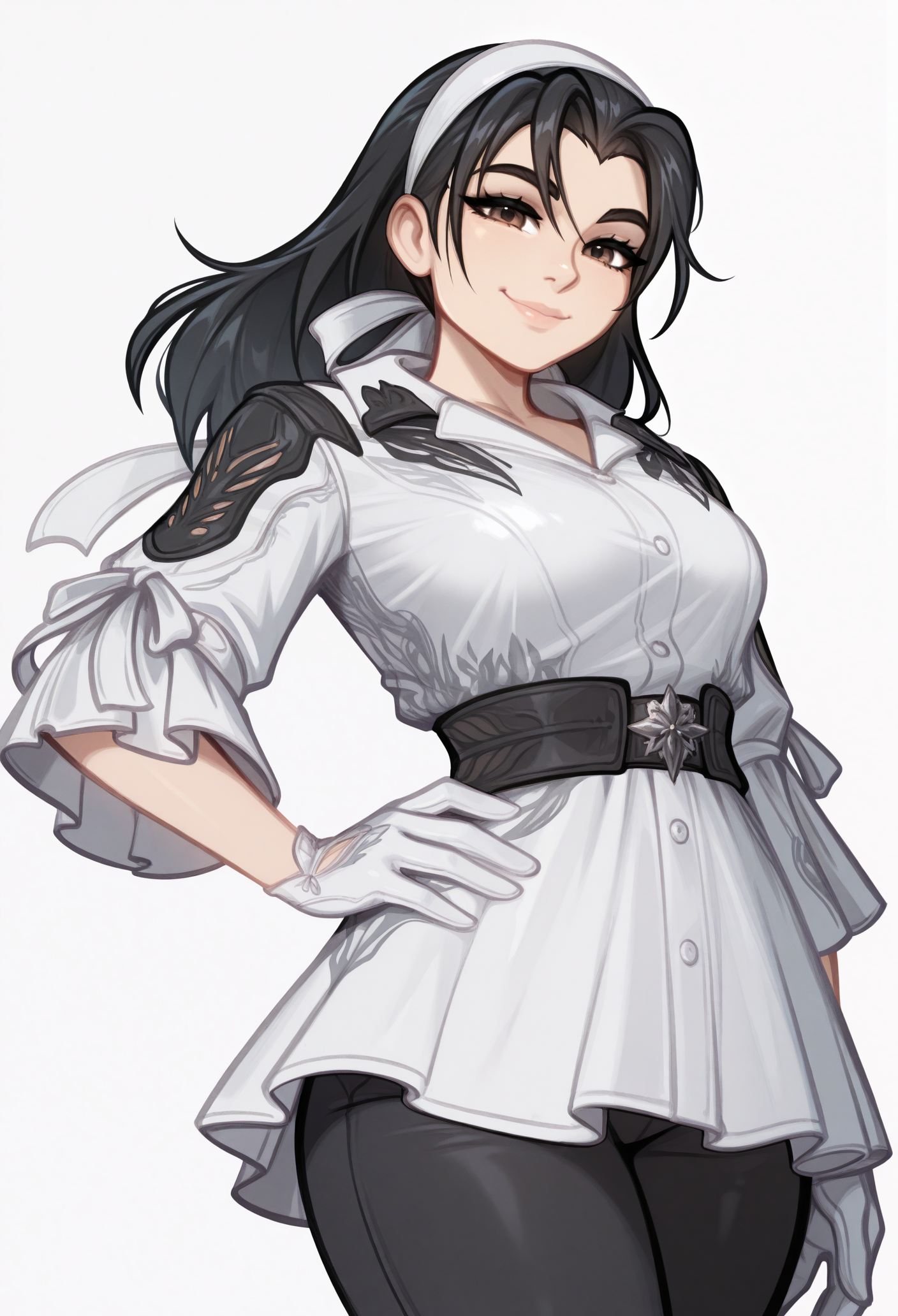 服装:白色丝带,白衬衫,翻领衬衫,腰带,白手套,黑裤子