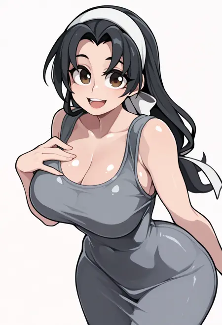 캐릭터 태그: 갈색 눈, 검은 머리, 긴 머리, 흰색 헤어밴드, 머리 리본