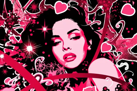 大胆でハイエネルギーなLoRAで、Frutiger Metro / _Y2Kベクターアート_の美学を再現することを目的としています——2000年代初頭の混沌を鮮やかに融合させたスタイル:グラフィティのスプラッシュ、光るリング、渦巻く線、ハーフトーンドット、抽象的な都市風景、花模様のカール、音符、シルエットの人々——これらすべてがネオンカラーのパレットと、深黒または高コントラストな背景に施されたステッカー切り抜きのような白い輪郭で包まれています。
