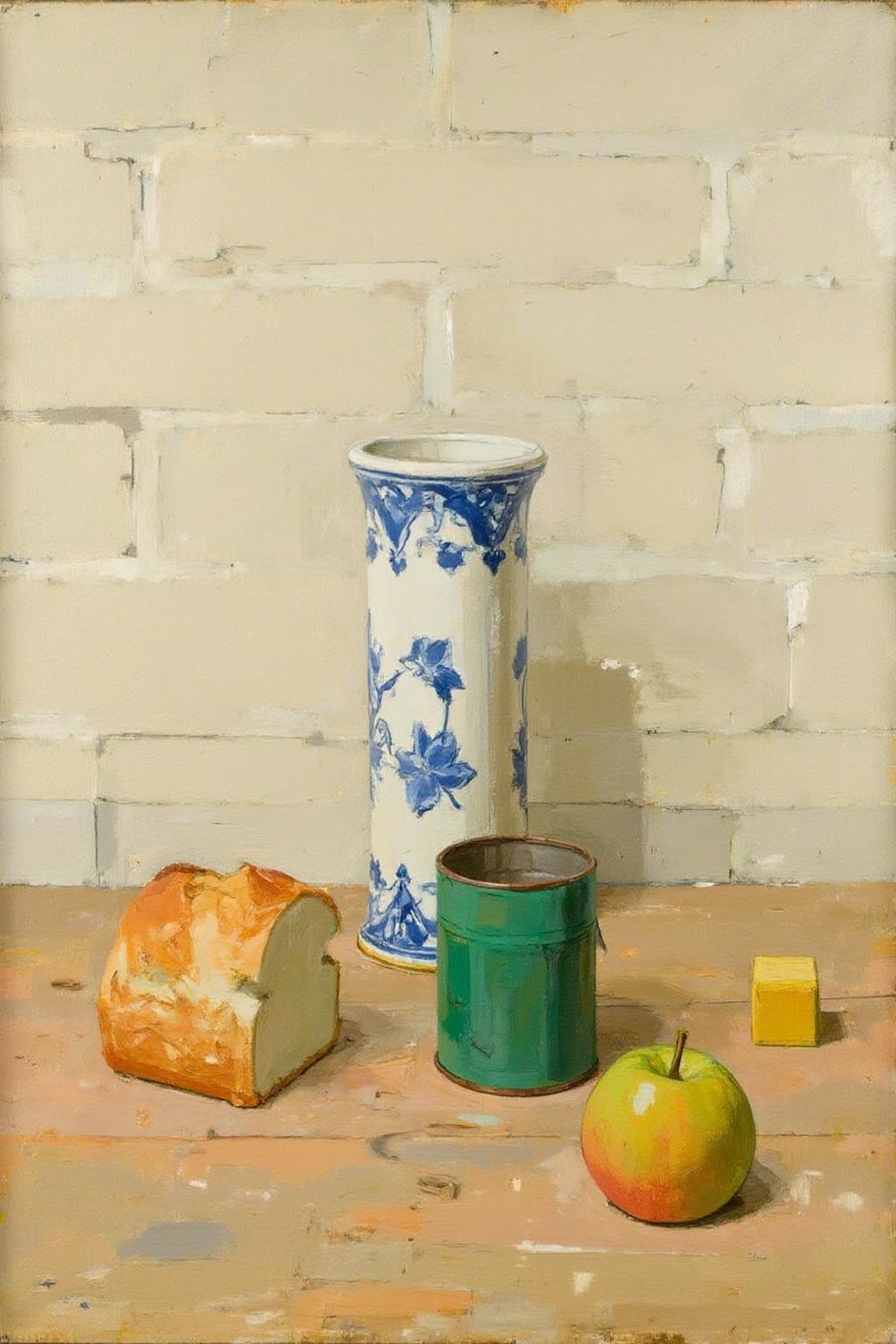 정물: 일상적인 물체를 신중하게 배열하며, 균형과 정렬에 거의 건축적인 집중을 보입니다.