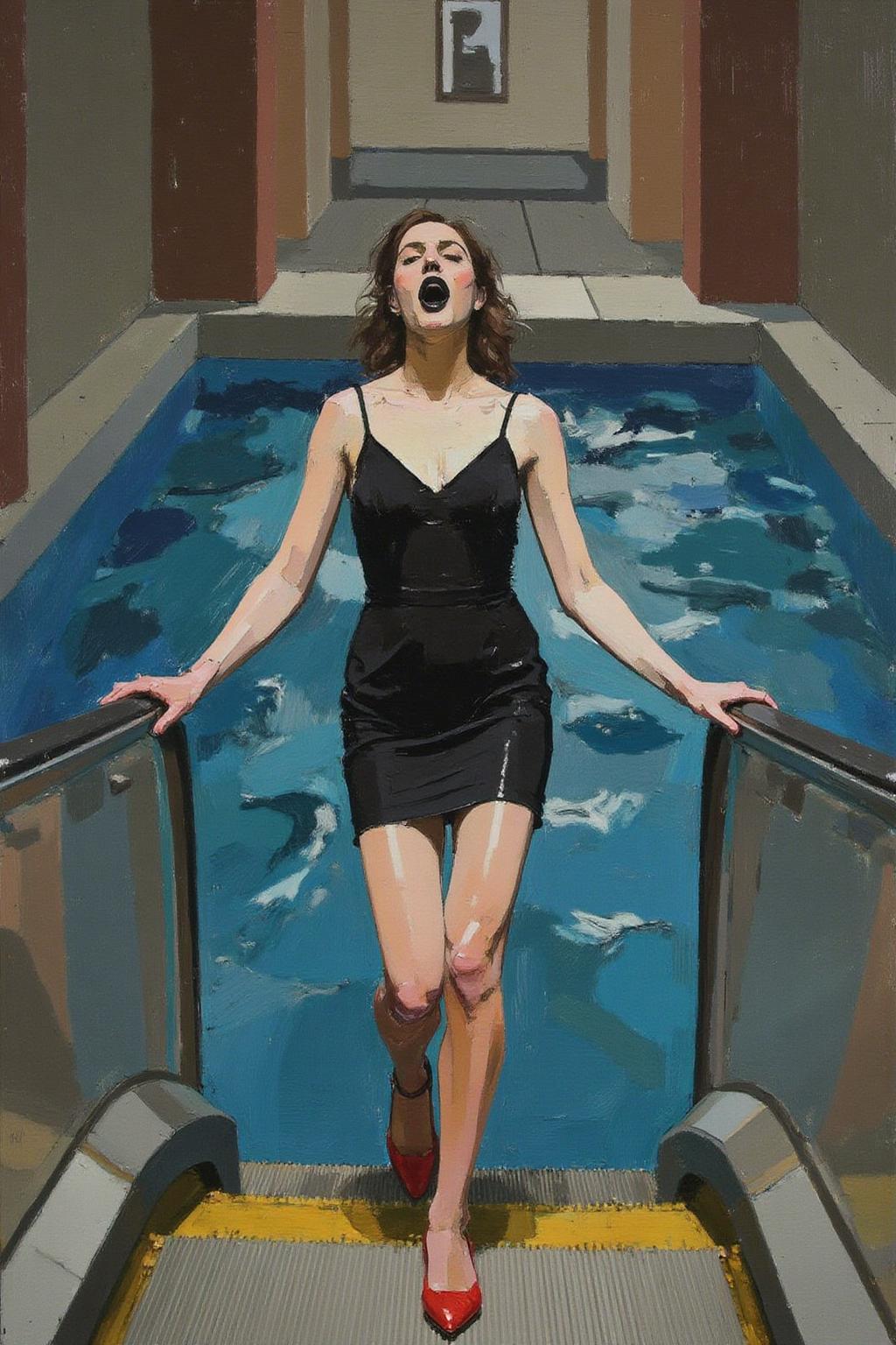 어글로의 스타일은 정밀성, 수학적 구조, 그리고 형태, 빛, 비례에 대한 세밀한 집중으로 특징지어집니다. 그의 회화는 계산된 구성으로 유명하며, 모델은 거의 완벽한 정확도를 달성하기 위해 긴 시간 동안 자세를 취합니다. 다음은 어글로의 독특한 예술 스타일의 핵심 특징입니다: