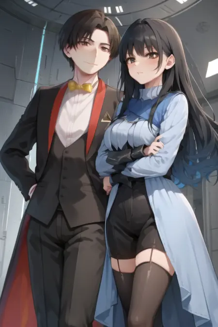 AceRinne, a man and a woman, hetero, standing, smile, cowboy shot