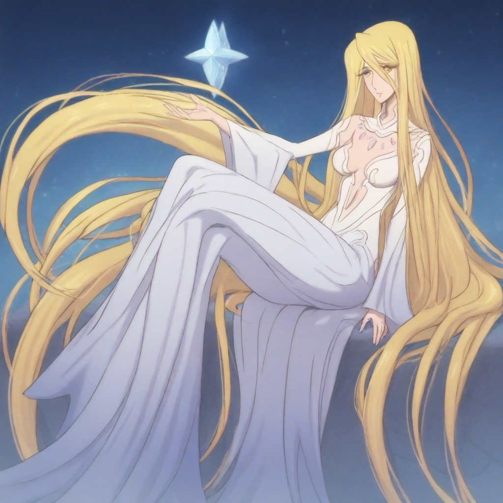 starsha, blonde hair,yellow eyes, absurdly long hair