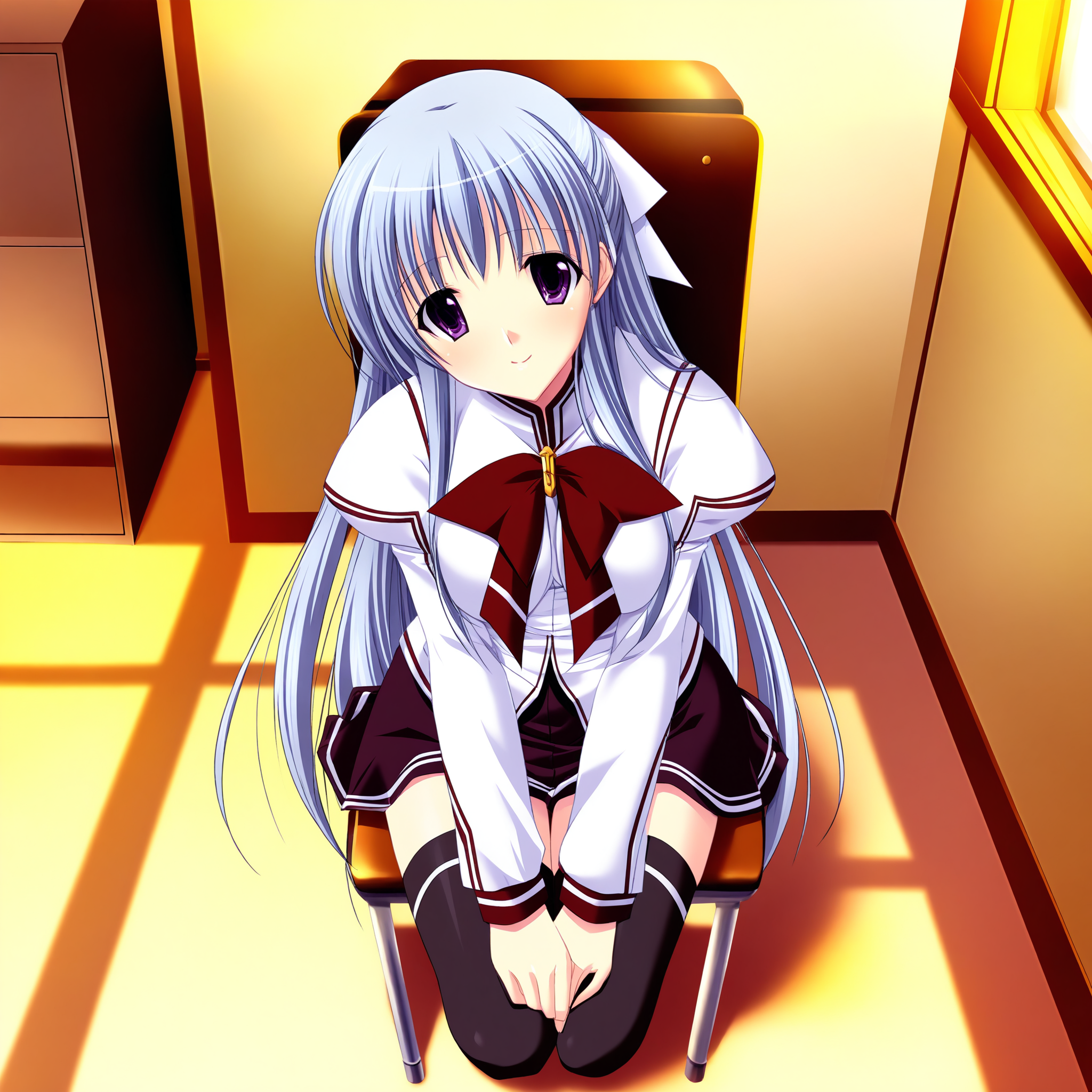 school uniform,bow,ribbon,half updo,black thighhighs,