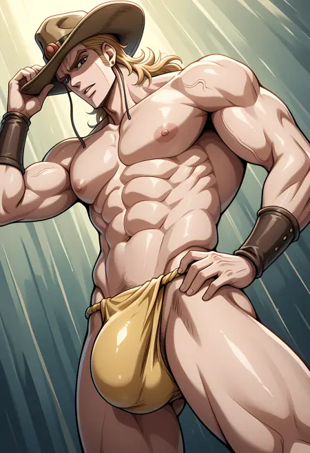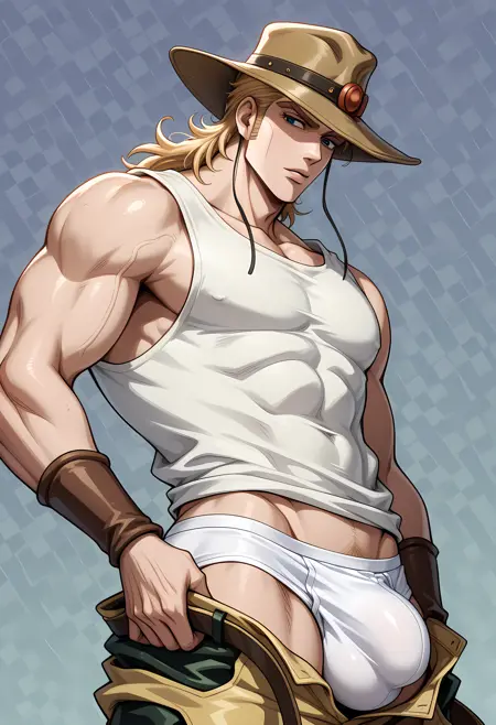 『ジョジョの奇妙な冒険 スターダストクルセイダーズ』のホル・ホース。トリガーは[jjba_holhorse]、そして[emp_gun]に[revolver]または[handgun]を組み合わせると、「皇帝」の「スタンド」の外観を強調します。