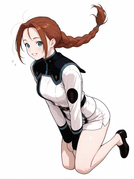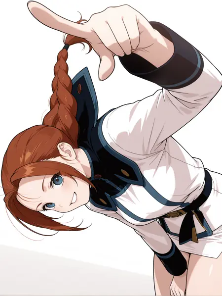 触发词:Livi, antenna hair, brown hair, blue eyes, single braid