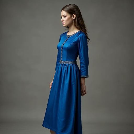 (bluAjahDr:1.0), woman, standing in a medieval chamber...일관된 비단 질감, 은색 디테일, 격식 있는 복장 구조에 최적화되어 학습됨.