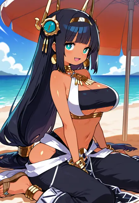 hennaclothes, 할터넥, 크롭탑, 소매 없음, 가슴, 젖가슴, 아랫가슴, 어깨 노출, 팔찌, 팔찌, 배꼽, 복부, 골반 커튼, 검은 바지, 발목장식, 샌들, 보석, 귀걸이,