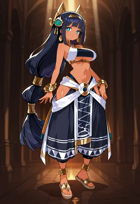 hennaww, 검은 피부, 검은 피부를 가진 여성, 청록색 눈, 흰색 동공, 검은 머리카락, 긴 머리카락, 매우 긴 머리카락, 낮게 묶인 긴 머리, 둔한 앞머리, 옆머리, 헤어밴드, 머리 장식, 중간 정도의 가슴,