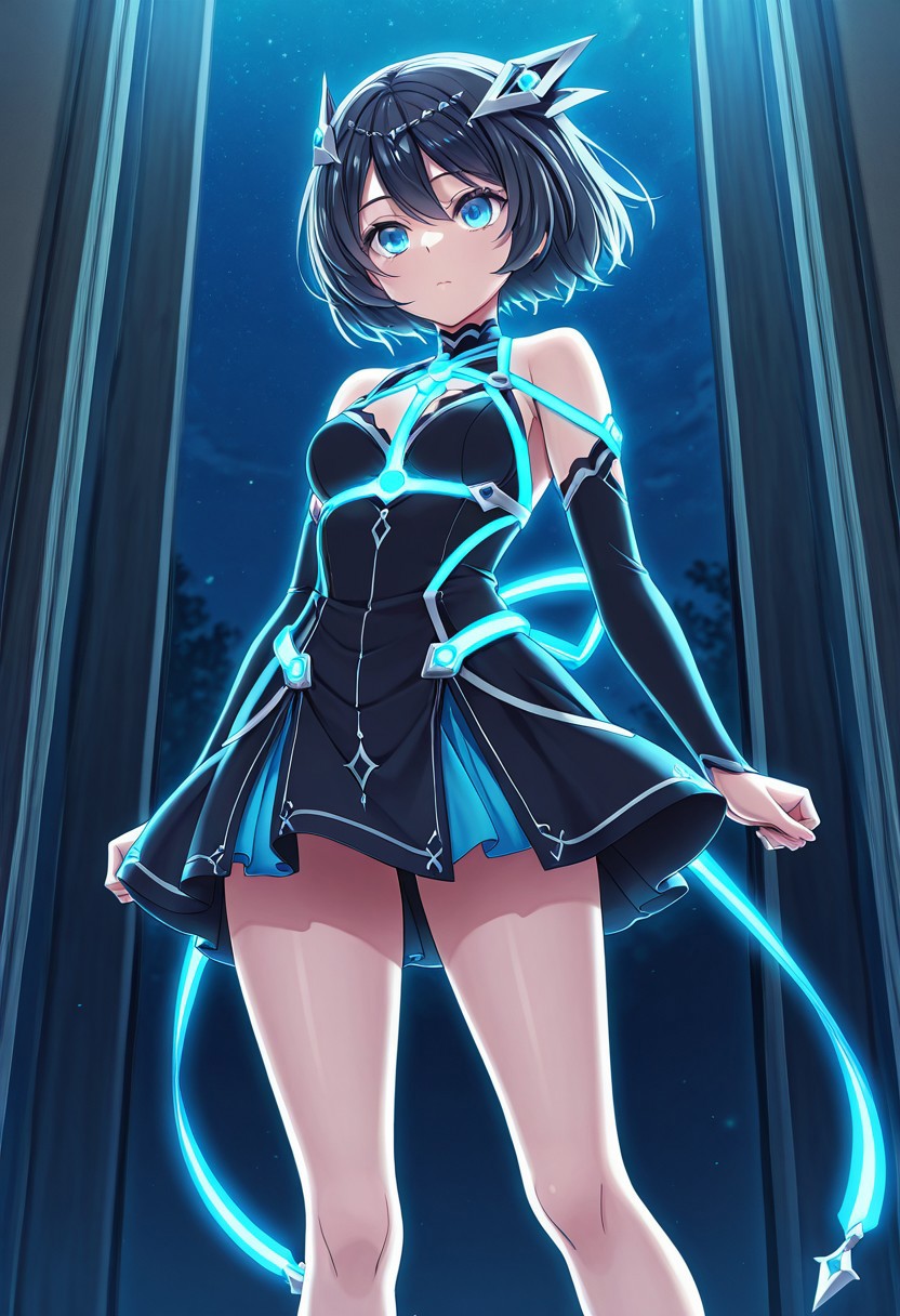 트리거 단어: MidwayMinashigo, 검은 머리, 단발, 파란 눈, 머리 장식